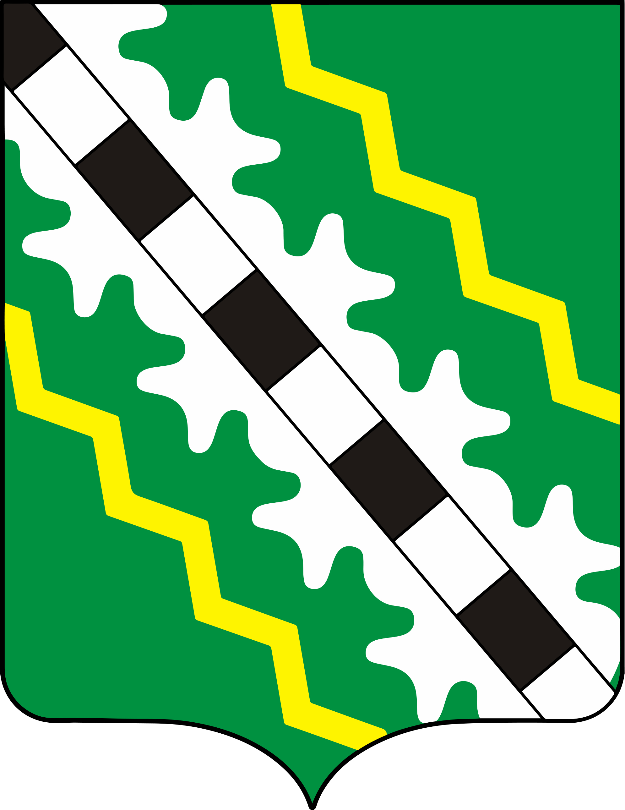 Территорию района, обозначенную зелёным цветом, по диагонали пересекает чёрно-белая железнодорожная линия. Её окаймляют изломанные золотые линии, символизирующие электричество.