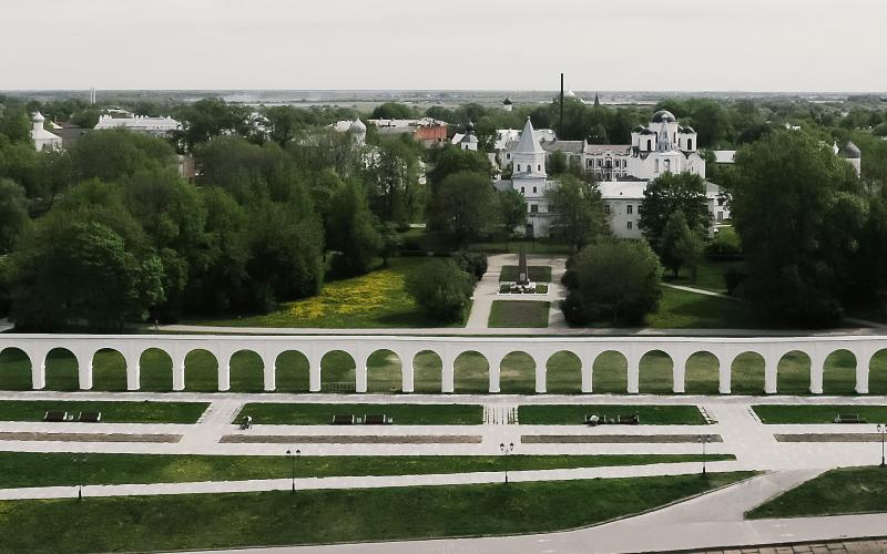 Аркада Ярославова дворища — единственный уцелевший фрагмент Гостиного двора XVIII века на Торговой стороне Новгорода. Очерчивая зону средневекового Торга, она хранит память о расцвете купечества на берегах Волхова.
