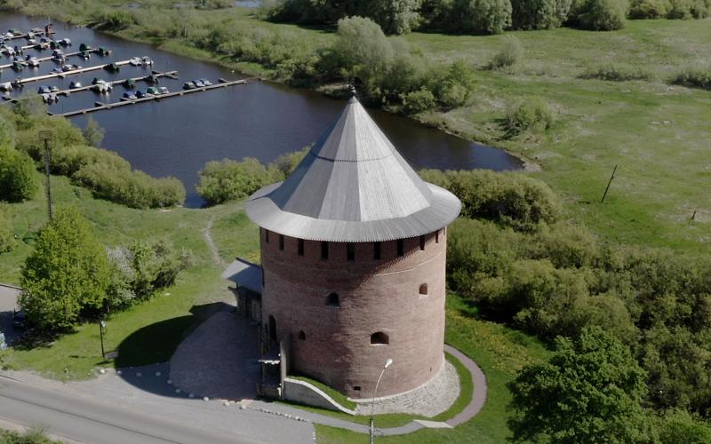 Единственная уцелевшая башня из внешней линии оборонительных укреплений конца XIV в. — новгородского Окольного города. Мощная кладка, способная выстоять под длительным пушечным обстрелом, позволила сооружению сохраниться до наших дней.