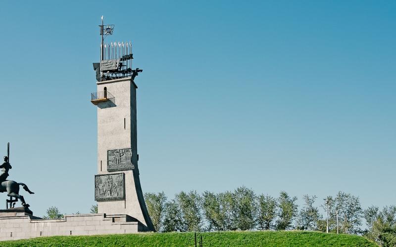 Единственная в Великом Новгороде конная статуя установлена 20 февраля 1974 года на Екатерининской горке к 30-летнему юбилею освобождения города от немецкой оккупации. Монумент символизирует подвиги новгородцев на протяжении всей российской истории.
