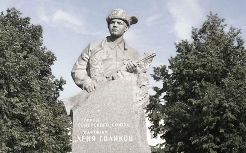 Памятник юному партизану Леониду Голикову в сквере у Дома Советов установлен в 1964 году по проекту скульптора Н. В. Томского. 16-летний герой из Старорусской бригады уничтожил десятки врагов, но погиб в 1943 году.