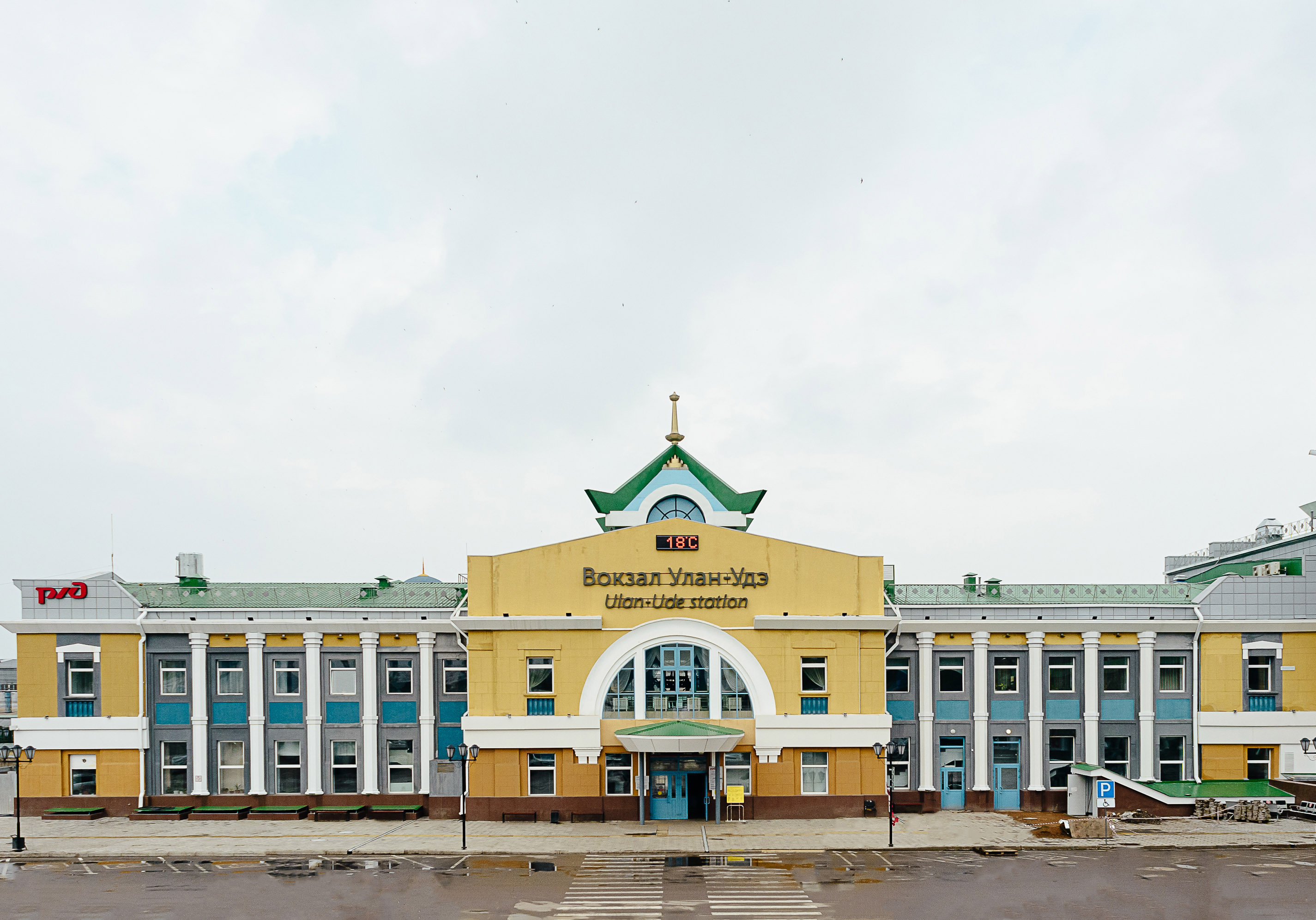 Привокзальная площадь. Вид на железнодорожный вокзал станции Улан-Удэ. 2021