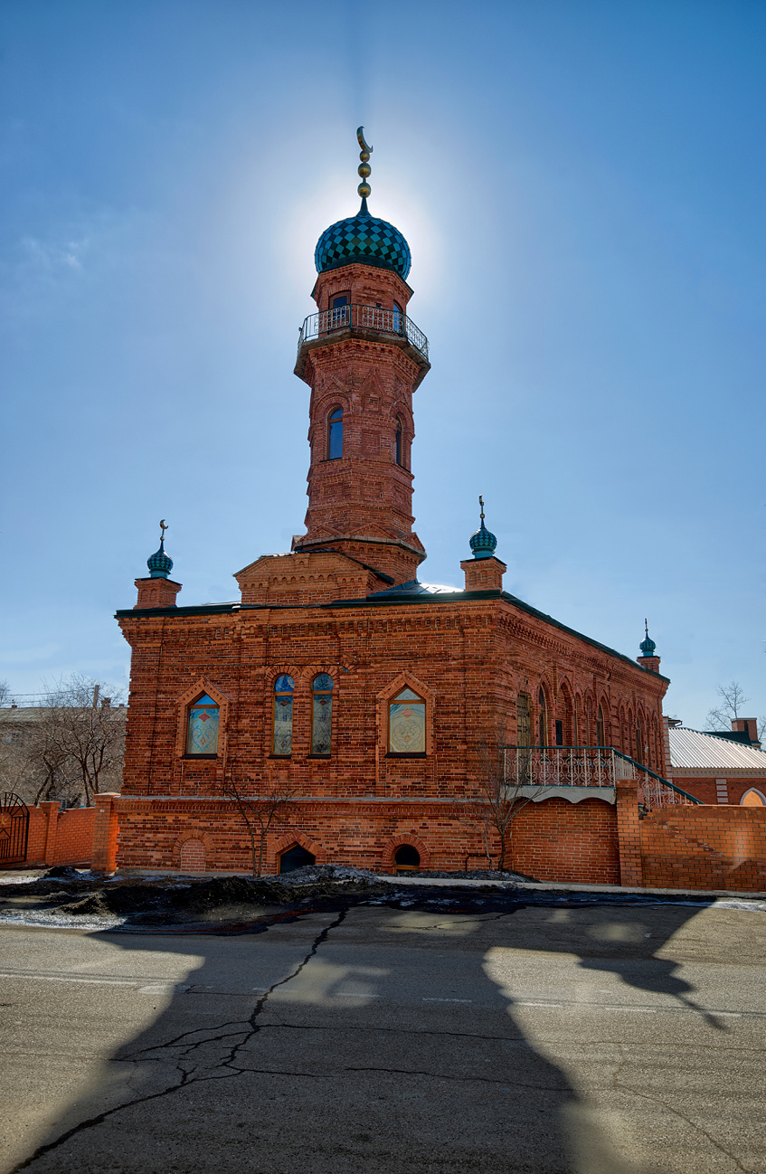 К южному торцевому фасаду здания примыкает пятигранный михраб — стенная ниша, указывающая молящимся направление на аравийский священный город Мекку, находящийся к юго-западу от Читы.