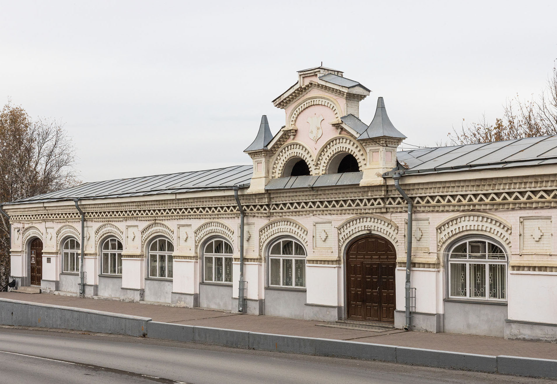 Кирпичное здание — четырехугольное в плане и одноэтажное — построено в стиле эклектики: в его оформлении сочетаются русские и восточные мотивы. Оно включало 19 лавок, в каждую из которых вела полукруглая дверь, а окна отсутствовали (в настоящее время сохранились три двери, остальные девять переделаны в окна). Пышный декор украшал верхнюю часть дверей, карниз и небольшой фронтон сложной формы. Две башенки по обе стороны от него должны были напоминать о китайских пагодах: из Китая привозился обогативший Грибушина товар — чай.